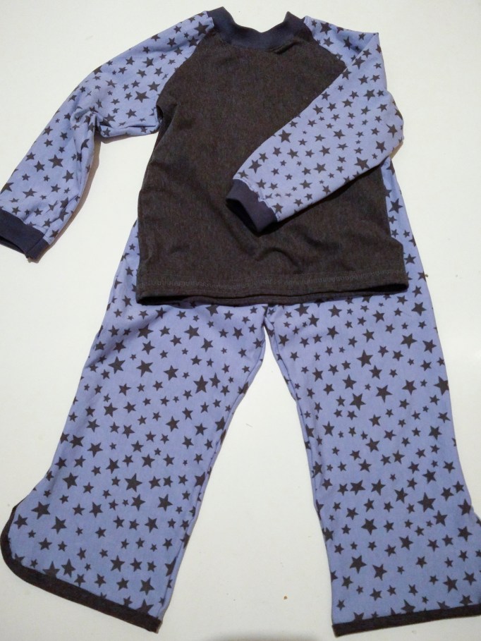 Ich habe bisher alles mit Overlocknähten genäht. Die Schrittnaht habe ich zusätzlich mit einer zweiten Steppnaht daneben verstärkt.