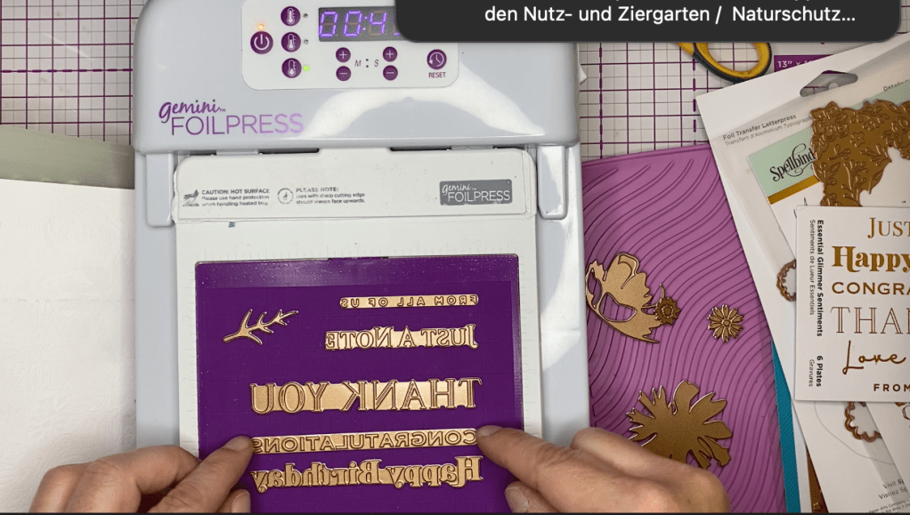 Es gibt wieder ein You Tube Video zum ganzen Prozess mit vielen Erklärungen und Tipps. Ich würde mich freuen, wenn ihr meinen Kanal oder meinen Blog abonniert, wenn es euch gefällt. Habt ihr auch eine Foilpress im Einsatz? Ich würde mich über eure Erfahrungen in den Kommentaren freuen.