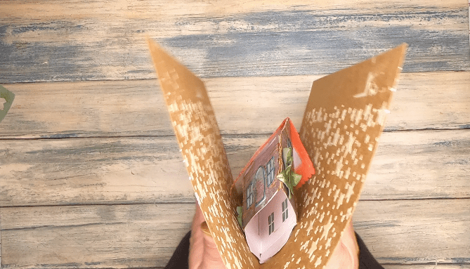 Zusammengefasst kann ich aber sagen, dass man nur einen zusätzlichen Teil benötigt, damit sich das Dach flach faltet und zwei einfache Laschen zur Befestigung des Hauses an der Karte.